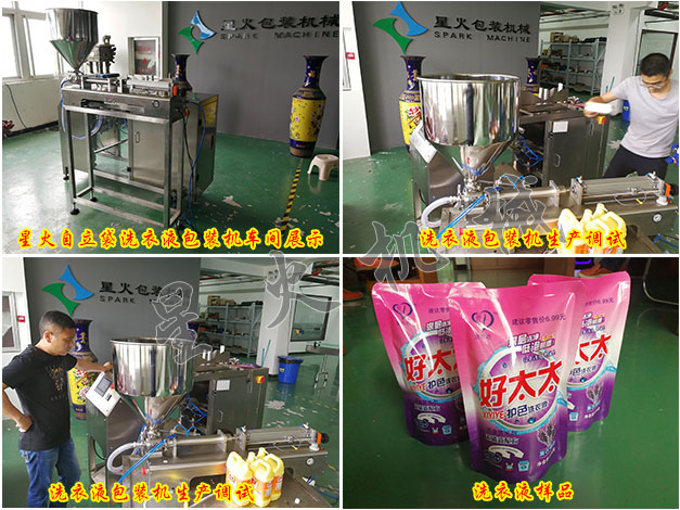 辣么好的洗衣液當(dāng)然生產(chǎn)也需要辣么好的設(shè)備來(lái)完成才行,星火為符合這一商品特性而設(shè)計(jì)研發(fā)制造了一款全新型的洗衣液包裝機(jī),該機(jī)為自立袋自動(dòng)包裝機(jī),是集上袋、定量灌裝、封合、切膜、自動(dòng)計(jì)數(shù)一次性自動(dòng)完成于一體的高端技術(shù)設(shè)備,藝流程部位采用不銹鋼制造,包裝袋熱合、送袋長(zhǎng)度、包裝重量、加熱溫度的調(diào)整,簡(jiǎn)便可靠,連續(xù)灌裝精度高,包裝速度快,維修方便,是用戶(hù)致富選擇的理想設(shè)備。包裝產(chǎn)品美觀牢靠,外殼、管道、定量泵采用不銹鋼結(jié)構(gòu),確保衛(wèi)生,符合食品衛(wèi)生的要求;包裝袋適應(yīng)范圍廣泛,對(duì)于多層復(fù)合膜、單層PE、PP等材料制成的預(yù)制袋、紙袋均可應(yīng)用。在包裝效率上,采用自動(dòng)化技術(shù),實(shí)現(xiàn)了規(guī)?;?、標(biāo)準(zhǔn)化的包裝,得以迅速的為洗衣液包裝。