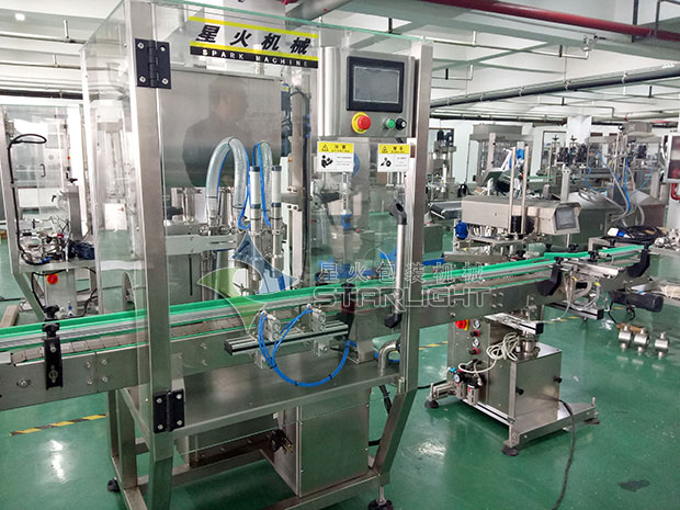 星火車間-大顆粒醬料瓶裝雙頭灌裝機(jī)與真空旋蓋機(jī)配套使用,組成雙頭醬料灌裝旋蓋生產(chǎn)線,滿足灌裝、旋蓋生產(chǎn)需要。