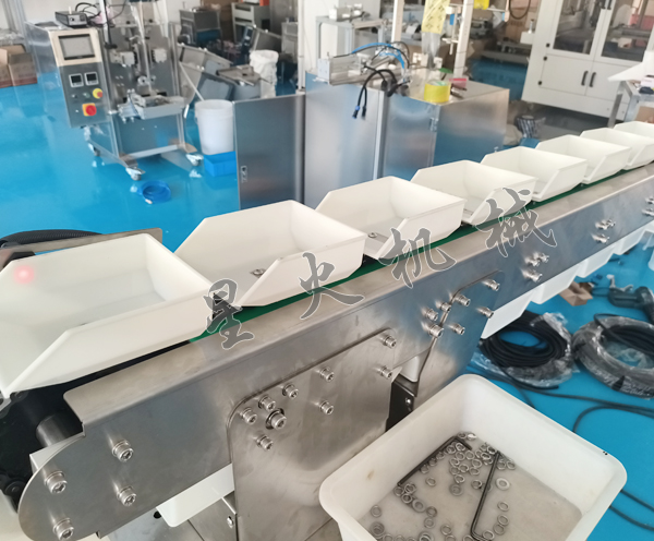 2.鏈斗運輸帶:根據(jù)需求定制物料運輸鏈斗,適合多種混合物料包裝,人工投料,鏈斗輸送,自動完成制袋、充填、封口等步驟連續(xù)運行流暢,不卡頓。