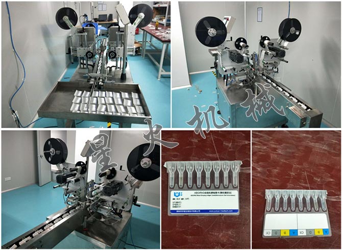 試劑卡雙面貼標機-血型檢測卡貼標機(深圳某生物技術(shù))