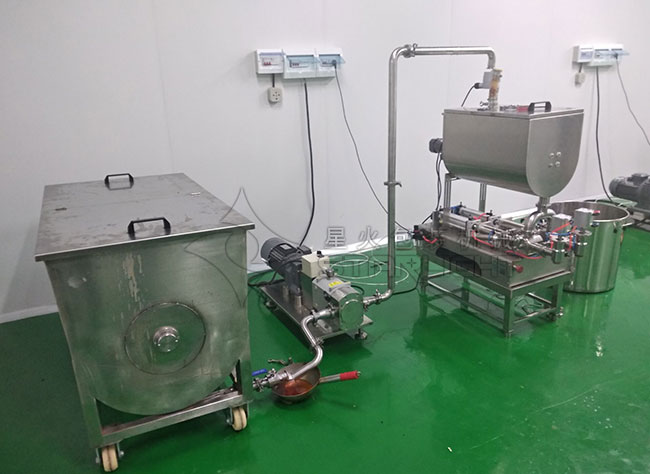 此次,香香羊火鍋所購買的這款自動火鍋辣醬灌裝機是由400kg攪拌桶+轉子泵+液位感應器帶管道+辣椒醬雙頭灌裝機所組建而成的,針對大顆粒醬料、火鍋底料的灌裝而研制,料桶及與物料接觸部分均采用316L不銹鋼材料制成,符合食品衛(wèi)生安全標準,適用于各類粘稠體及含有各種固體物質如辣椒、花生、肉塊,佐料等物體的醬和油、料分離的火鍋底料的生產(chǎn),設備結構合理簡單,精度高,廣泛應用于火鍋底料、火鍋辣醬、火鍋芝麻醬、辣椒醬、麻辣醬、香辣醬、牛肉醬、豆辨醬、鮮辣醬、豆豉及郫縣豆醬等醬類包裝。