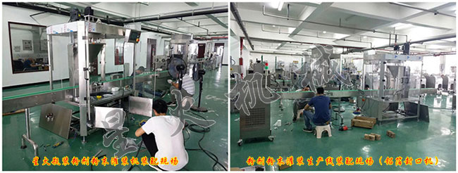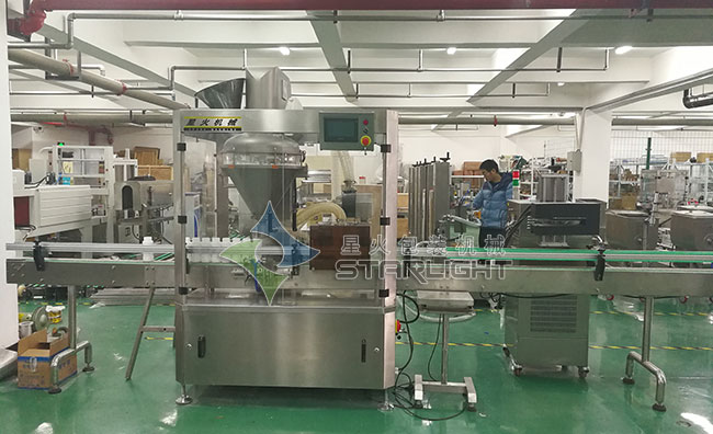 星火車間-粉劑瓶裝直線型自動灌裝機(jī)與鋁箔封口機(jī)配套使用: