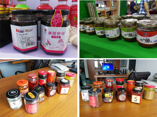 星火瓶裝辣椒醬自動貼標機設(shè)備樣品