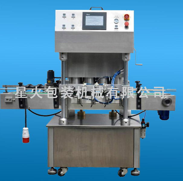 三(四)旋蓋玻璃瓶真空旋蓋機由XH-ZK-4 配線式真空旋蓋機配套上蓋機組成,專用于玻璃瓶的抽真空旋蓋。